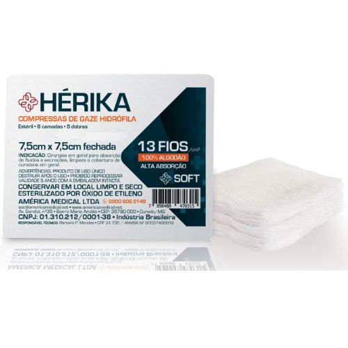Gaze Esteril 7,5X7,5 13Fios Com 10 Esteril America/Herica