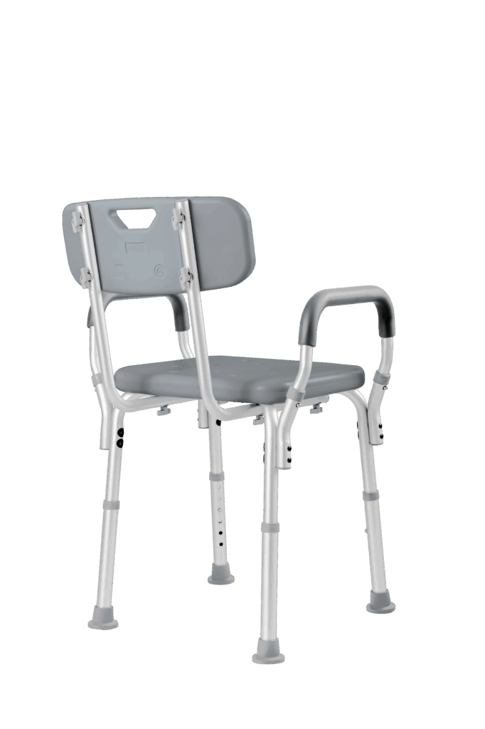 1. Segurança e estabilidade: Apoios de braço acolchoados e ponteiras emborrachadas garantem firmeza no piso molhado.