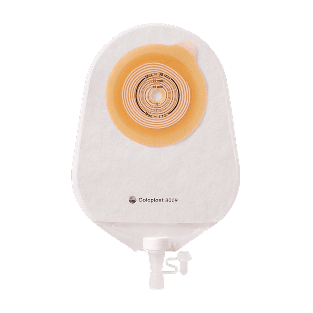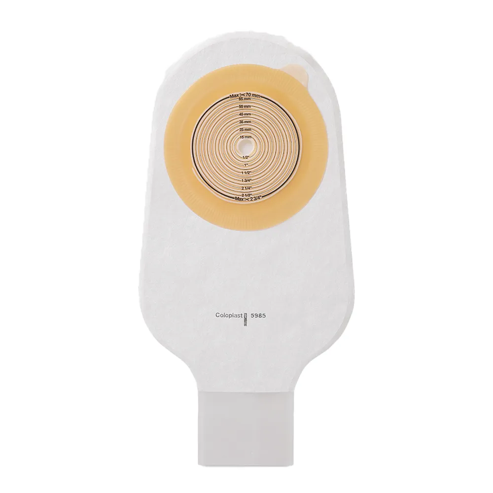 - Remova o papel protetor do adesivo e aplique a bolsa sobre o estoma.