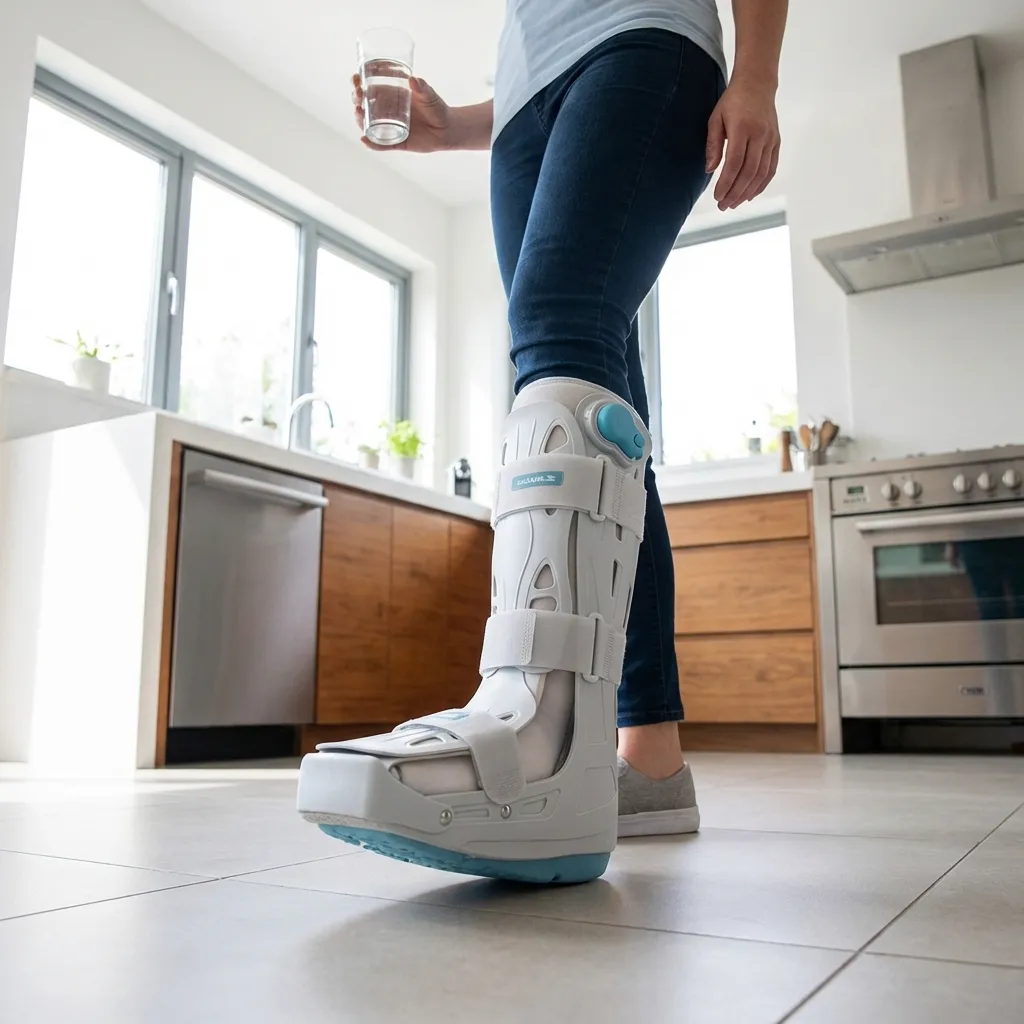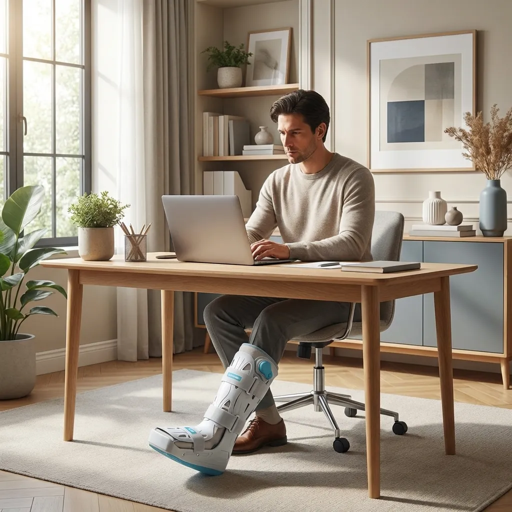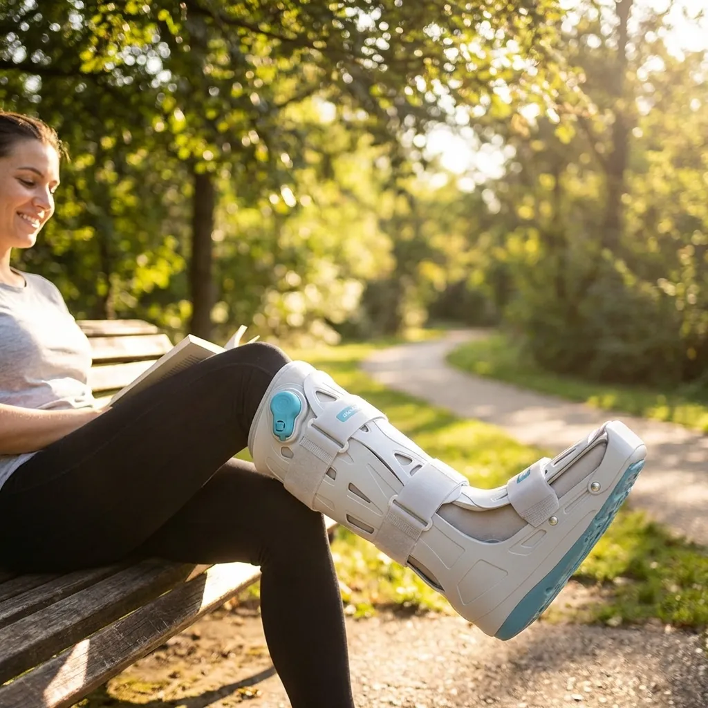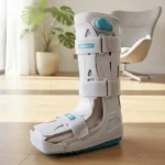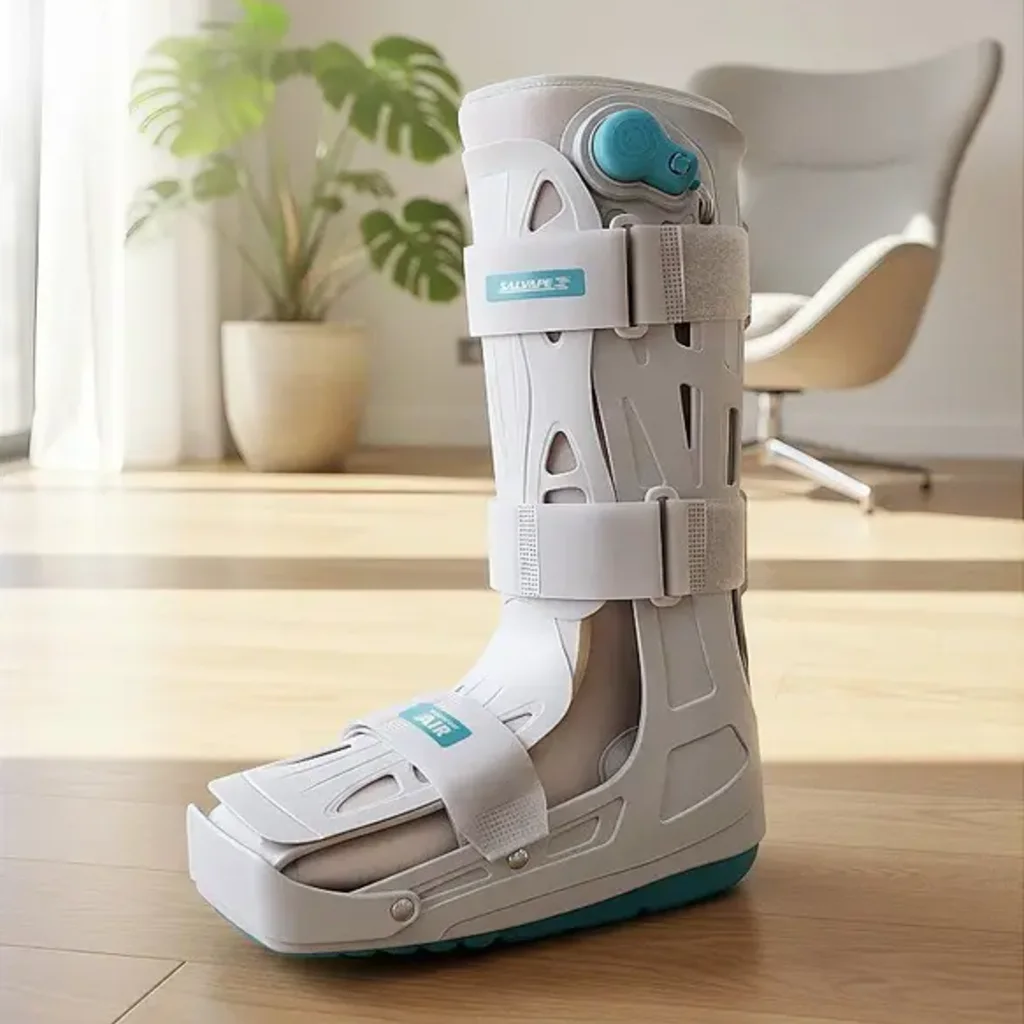 - Coloque a bota no pé afetado e ajuste as tiras de fixação.