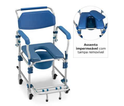 | Acessórios inclusos | Comadre, apoio de pés rebatível, braços escamoteáveis |