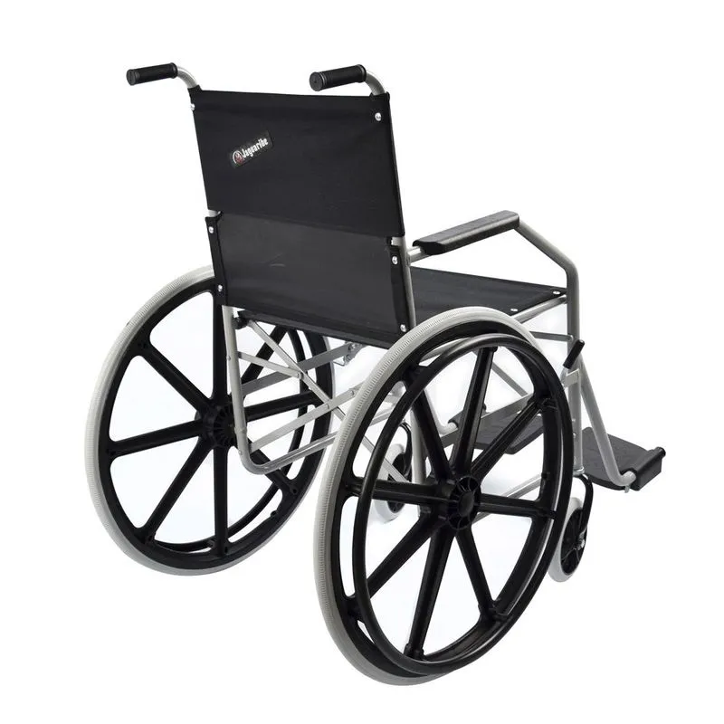 - Mobilidade aprimorada: rodas traseiras de 24″ e dianteiras de 6″, com pneus maciços e duráveis.