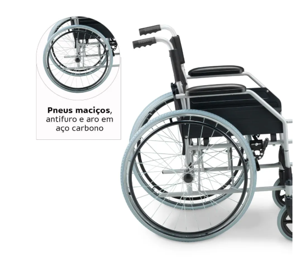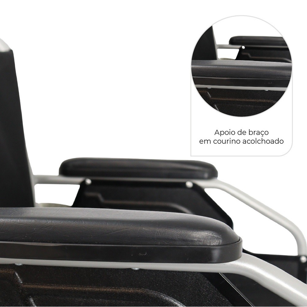 4. Ergonomia total: apoios de braço almofadados, assento e encosto acolchoados e freios acessíveis.