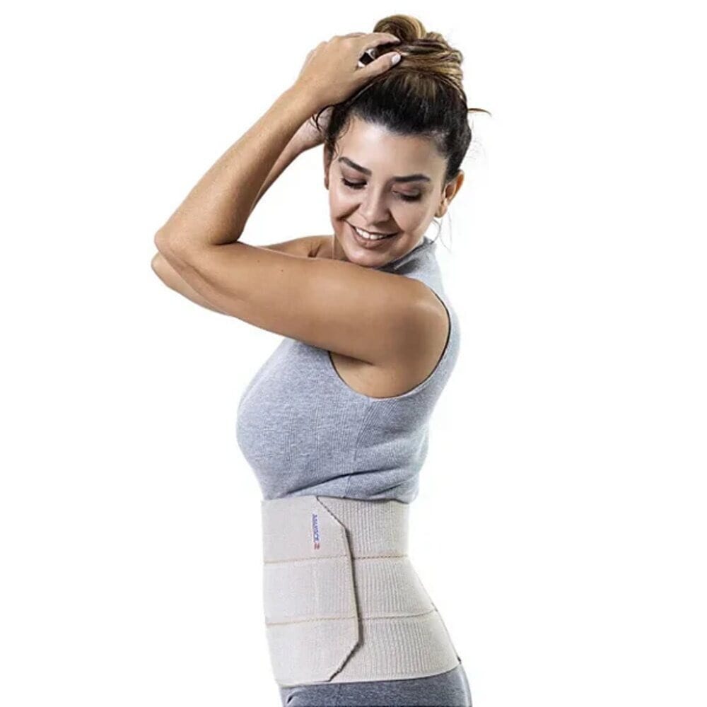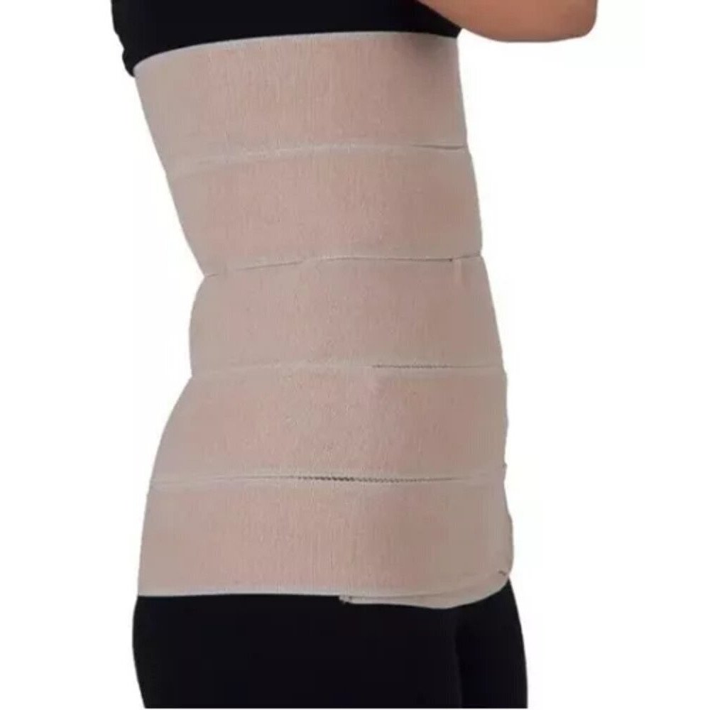 - **Posicione a cinta**: Envolva a faixa ao redor da região abdominal, certificando-se de que ela esteja centralizada na área operada.