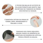 - Não gruda na ferida: cobertura com emulsão de petrolato que protege sem aderir ao tecido.