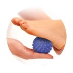 - Segure a esfera entre as mãos ou posicione-a sob os pés, aplicando pressão leve para ativar os cravos sensoriais.