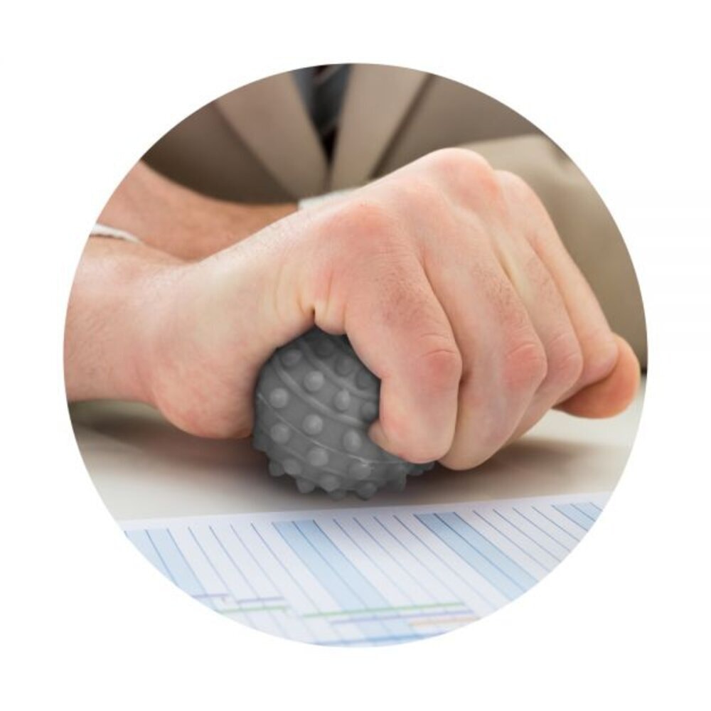 - Segure a esfera entre as mãos ou posicione-a sob os pés, aplicando pressão leve para ativar os cravos sensoriais.