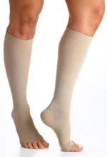 As meias Sigvaris panturrilha ponteira aberta premium natural Gemed, são revestidas internamente com microfibra que auxilia a transferência da umidade da pele (suor) para o meio externo, oferecendo uma agradável sensação climática, além de tornar o produto mais sedoso, confortável e mais fácil de calçar. Eficazes para o tratamento das doenças venosas e linfáticas com manifestações leves, moderadas e graves.