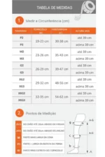 Tabela de medidas P (Longa)Tornozelo: 19-23 cm | Panturrilha: 30-38 cm | Altura: acima 39 cm