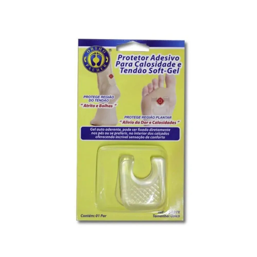 Protetor Adesivo para Calosidade e Tendão Softgel – OrthoPauher – Proteção e alívio imediato para calos, bolhas e calosidades na sola dos pés e região do tendão. Seu design exclusivo adapta-se perfeitamente à área afetada, proporcionando conforto excepcional através do gel autoaderente. Elimina atrito e pressão, protegendo e aliviando a dor, seja fixado diretamente nos pés ou no interior dos calçados.