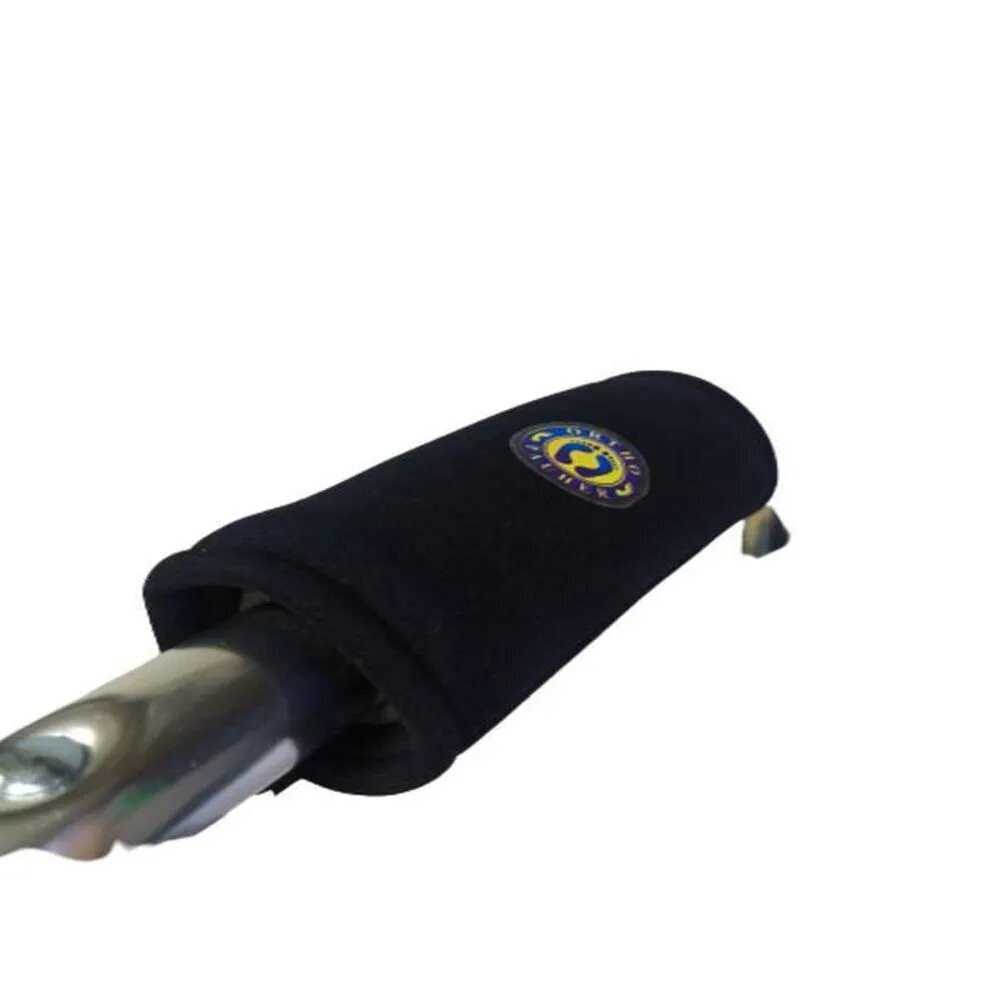 - Encaixe o protetor sobre o apoio de mão da bengala ou muleta, ajustando-o conforme necessário.