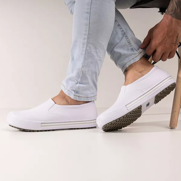 - Ambientes que exigem calçado antiderrapante e fácil de higienizar