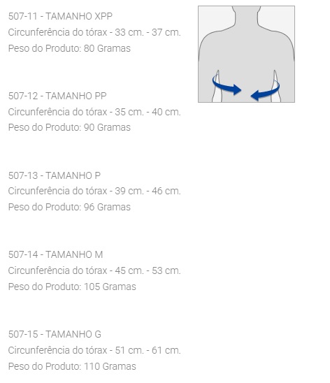 | Tamanho | Circunferência do Tórax |