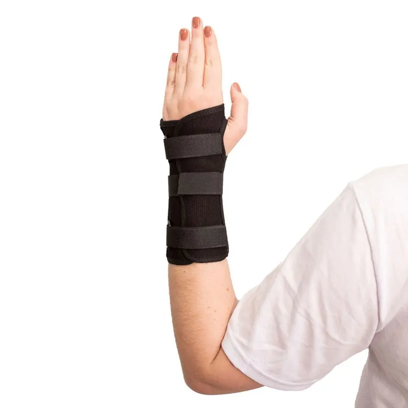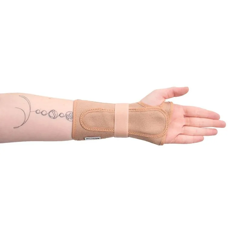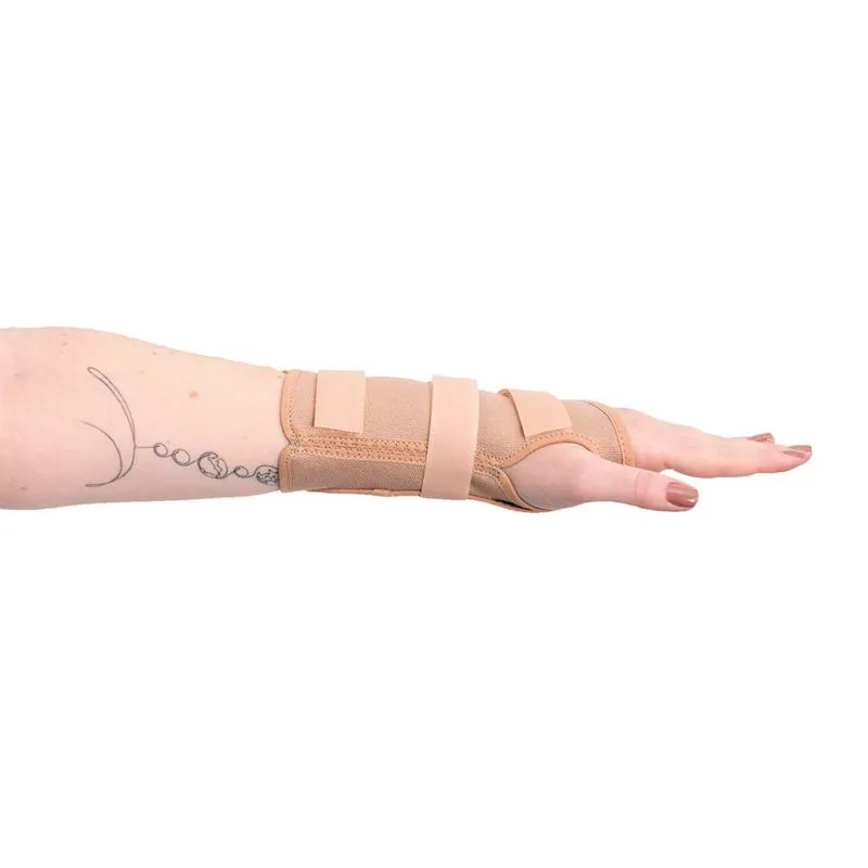 - Suporte e estabilização: Tala anatômica removível que mantém o punho na posição correta.