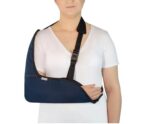 - Coloque o braço na tipoia, posicionando o cotovelo no ângulo da tipoia.
